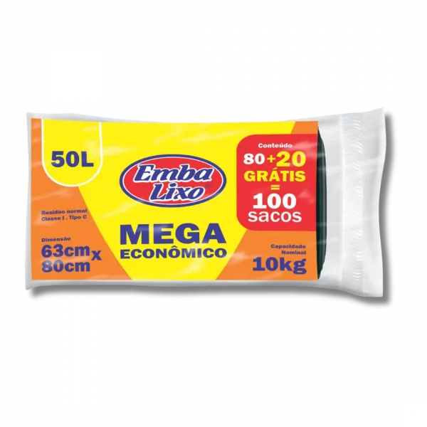 Saco de lixo Embalixo Mega Econômico 50L Pacote C/100 Unidades