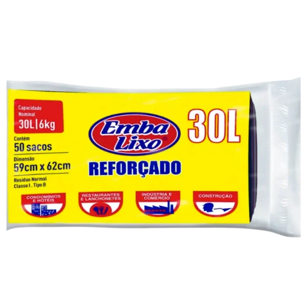Saco de Lixo 50L Preto Reforçado Embalixo Pacote C/30 Unidades