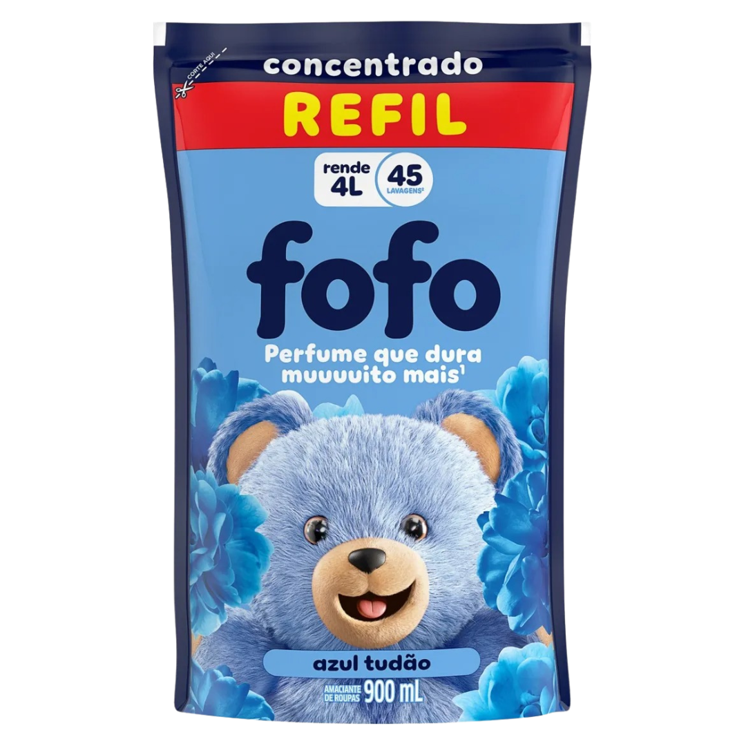 • Amaciante Fofo Azul Tudão, com perfume que dura muuuuito mais* • É muita maravilhosidade junta: suas roupas com suuuper perfume, suuuper maciez e suuuper rendimento. Ser intenso é com Fofo mesmo! • Com cápsulas de perfume que ficam agarradas nas fibras dos tecidos • Deixa suas roupas super macias • Amaciante de Roupa Fofo Azul Tudão, um mundo mais Fofo é o que a gente mais quer • Você pode usar essa embalagem como refil transferindo Fofo Concentrado para a garrafa que você guardou. Use a tampa para dosar Fofo Azul Tudão é um amaciante concentrado com perfume que dura muuuuito mais* e com 900 ml rende até 4 L e 45 lavagens**. Os amaciantes de roupas Fofo agora têm uma intensidade que anima, com perfume que dura muuuuito, deixa as roupas super macias e rende demais! Ser intenso é com FOFO mesmo! E o Fofo Azul Tudão não tá de brincadeira. É muita maravilhosidade junta: suuuper perfume, suuuper maciez e suuuper rendimento. Um mundo mais fofo é o que a gente mais quer. Fofo no jeito de agir, sabe assim? Suas roupas não querem mais outra vida! Fofo Azul Tudão é um amaciante de roupa concentrado que possui cápsulas de perfume que ficam agarradas nas fibras dos tecidos e fazem o perfume durar muuuuito mais, se tornando um produto indispensável em sua lavanderia. Explosão de perfumes que dão aquele ânimo e deixam seu dia ainda melhor. Modo de usar: para máquinas de 8 kg ou lavagem à mão: dosar menos de 1/3 da tampa. Para máquinas de 9 a 14 kg ou lavagem à mão: dosar 1/3 da tampa. Para máquinas de 15 kg ou maiores: dosar 1 tampa (67,5 ml). Você pode usar essa embalagem como refil transferindo Fofo Concentrado para a garrafa que você guardou. Use a tampa para dosar. *Comparado com produto da mesma marca sem perfume encapsulado, do mesmo fabricante. **Considerando recomendação de dosagem para máquina de até 8 kg (20 ml).