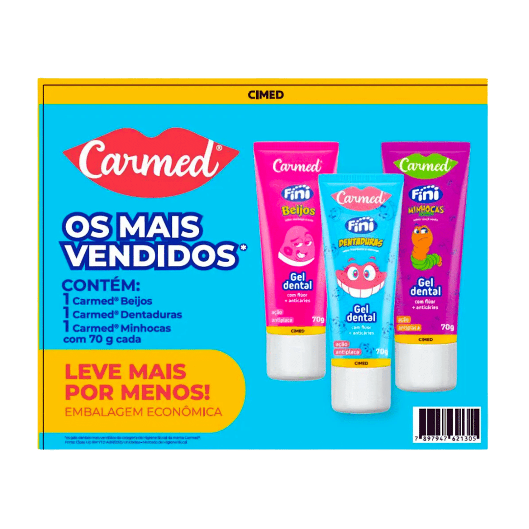 O Carmed Gel Dental Trio chegou para transformar a sua rotina de cuidados bucais em um momento leve, divertido e cheio de sabor!
