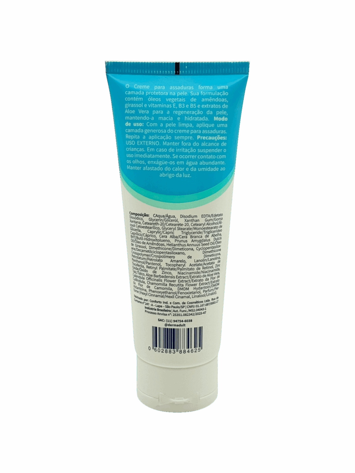Modo de usar: Aplique uma camada uniforme sobre a pele limpa e seca, especialmente nas áreas propensas a assaduras e irritações.