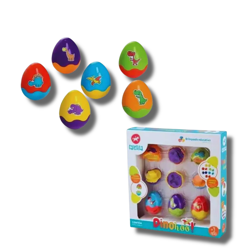 São seis divertidos ovos de dinossauros, cada ovinho tem uma forma geométrica em sua base de encaixe. As crianças vão adorar brincar com esses ovinhos educativos. Feitos para estimular e encantar o bebê. Favorece a criatividade dos pequenos, e estimula a coordenação motora fina, o pensamento logico e auxilia a distinguir formas e cores.