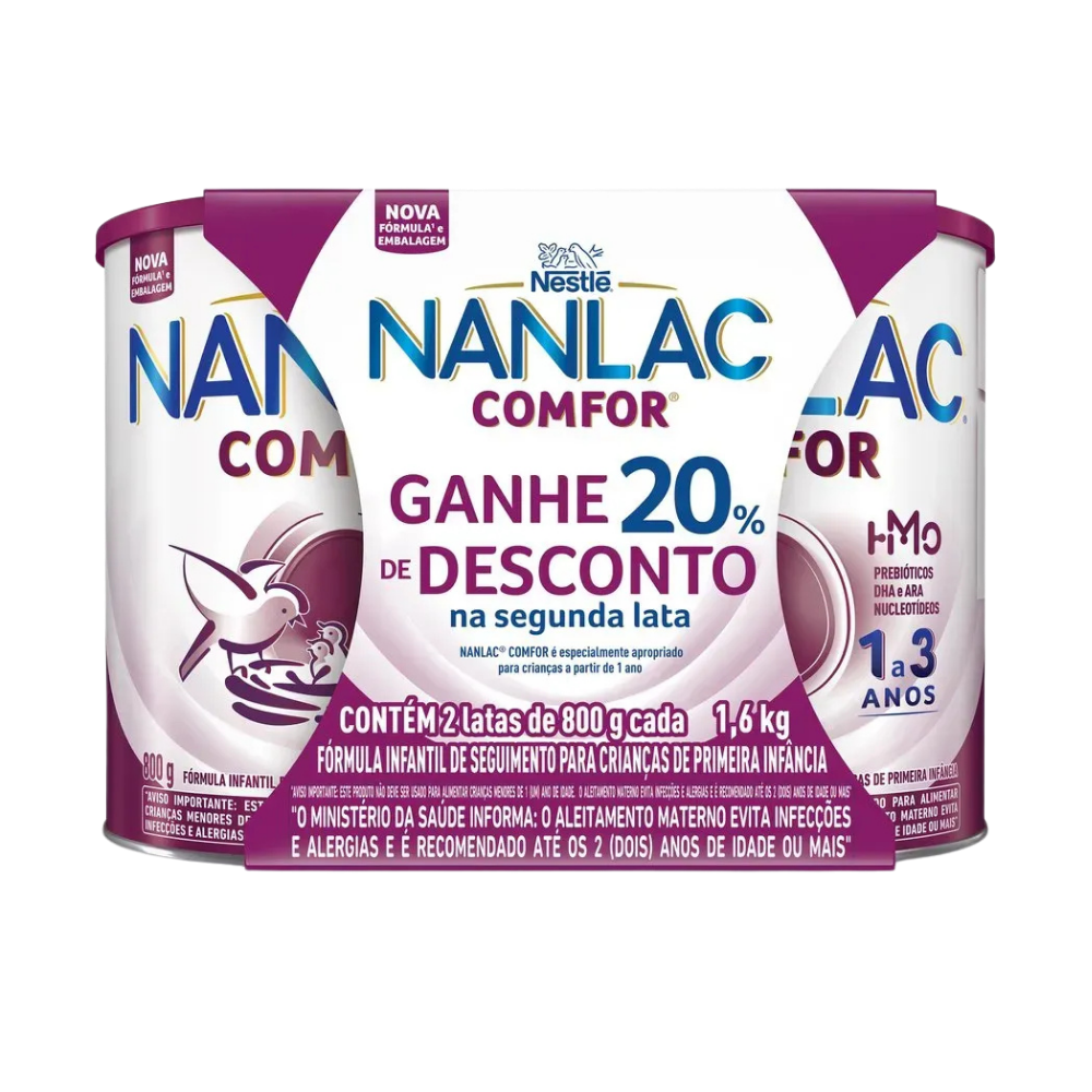 Nanlac Comfor de 1 a 3 anos. As Fórmulas infantis de Seguimento para Crianças de Primeira Infância são produtos desenvolvidos especialmente para crianças a partir de um ano de idade. As Fórmulas infantis apresentam teor especifico de proteínas, assim como a adição de vitaminas e minerais, recomendados para essa faixa etária.