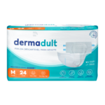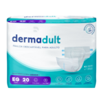 A Fralda Geriátrica Dermadult é a escolha ideal para quem busca proteção de alto desempenho contra incontinência severa para pós-parto, pós-operatório, e incontinência urinaria continua com conforto e segurança para uso prolongado. Desenvolvida com gel ultra absorvente e barreiras antivazamento, garante pele seca e protegida por muito mais tempo.