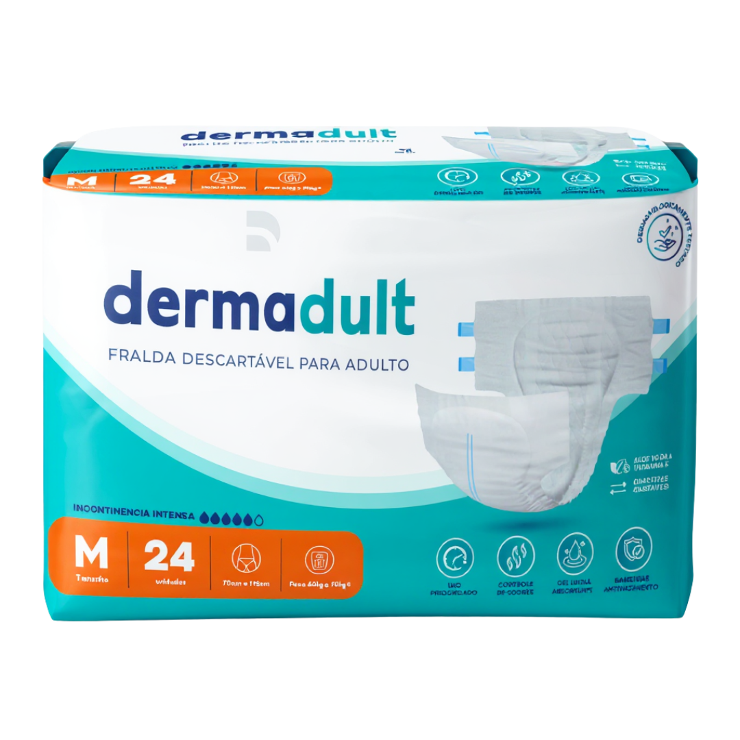 A Fralda Geriátrica Dermadult é a escolha ideal para quem busca proteção de alto desempenho contra incontinência severa para pós-parto, pós-operatório, e incontinência urinaria continua com conforto e segurança para uso prolongado. Desenvolvida com gel ultra absorvente e barreiras antivazamento, garante pele seca e protegida por muito mais tempo.