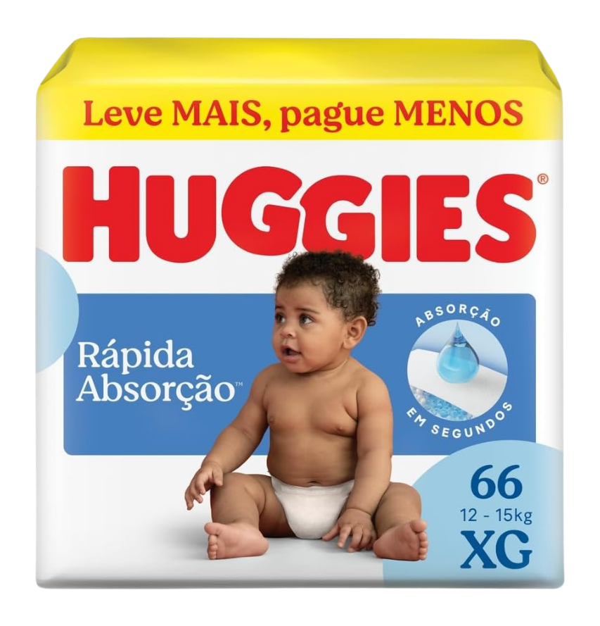 Com proteção de até 12 horas, Huggies Rápida Absorção é uma fralda descartável para bebês com a exclusiva tecnologia Xtra-Protect, que, exclusivamente, oferece máxima proteção e absorção por toda a noite, a partir de suas barreiras an-tivazamentos 20 vezes mais altas. Conta com fechos mais macios e ajustáveis, que abrem e fecham quantas vezes forem necessárias, facilitando ajustar a fralda de forma confortável no corpinho do bebê.