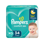 - Tamanho XG, Pacote com 34 und, indicada para bebês de 12kg a 15kg