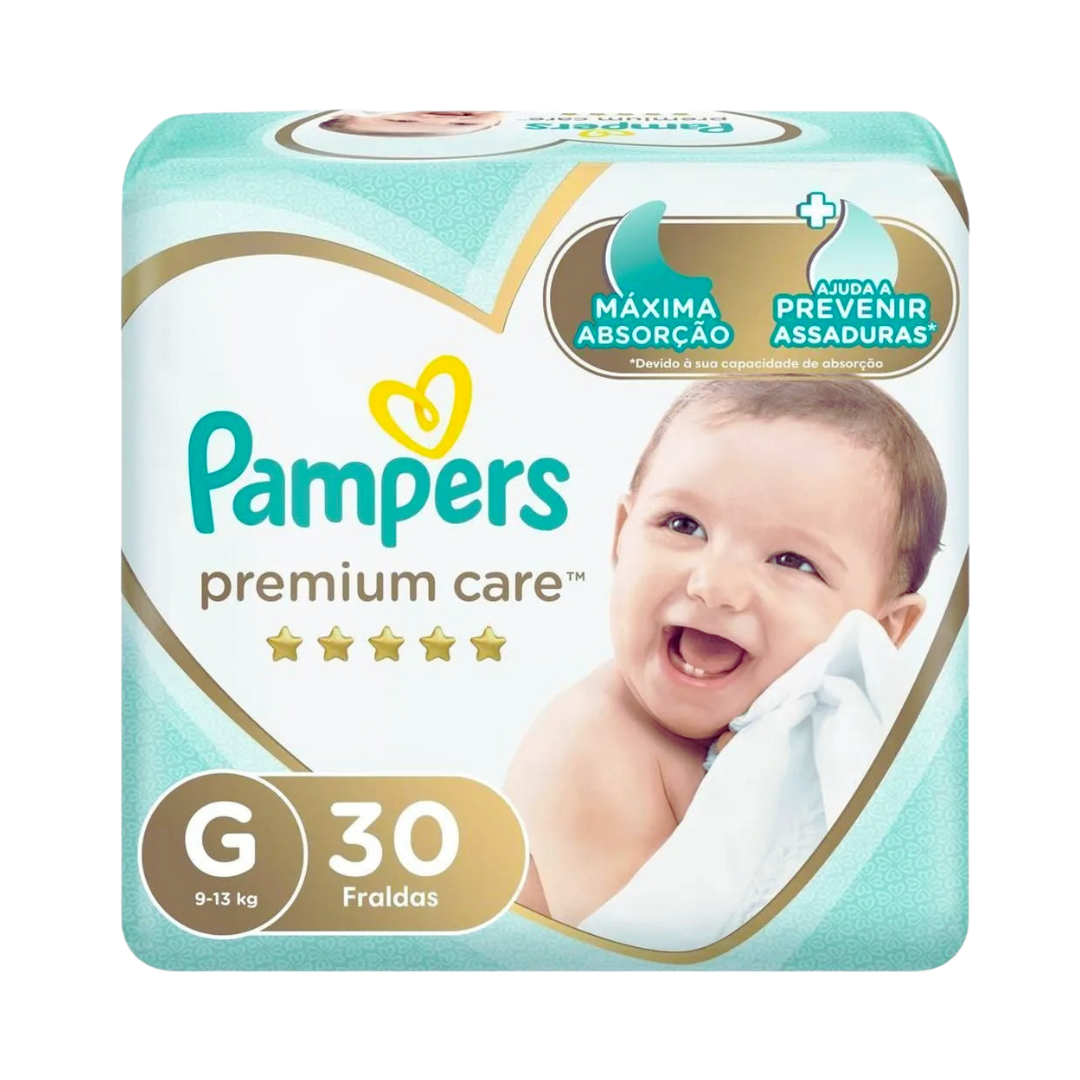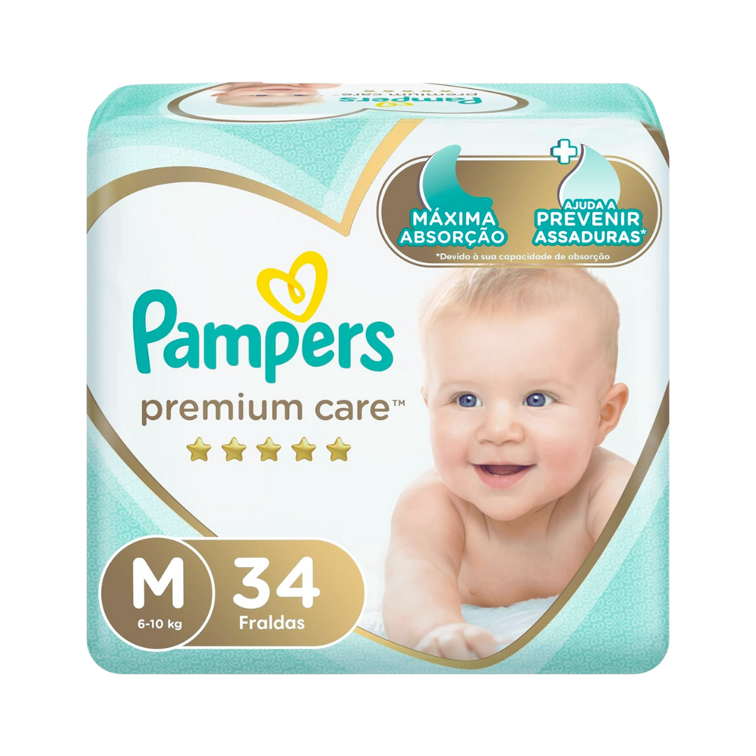 R$62,99A fralda descartável Pampers Premium Care possui laterais que se ajustam com conforto e flexibilidade, acompanhando o movimento do bebê.