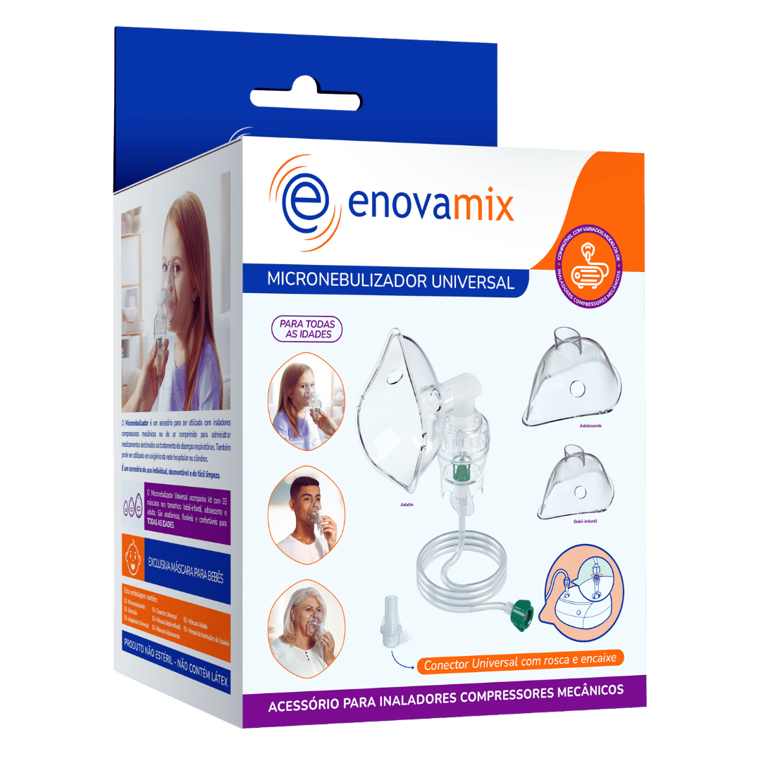 Micronebulizador Universal Enovamix é um acessório compatível para uso em variados modelos de inaladores compressores mecânicos e ar comprimido.