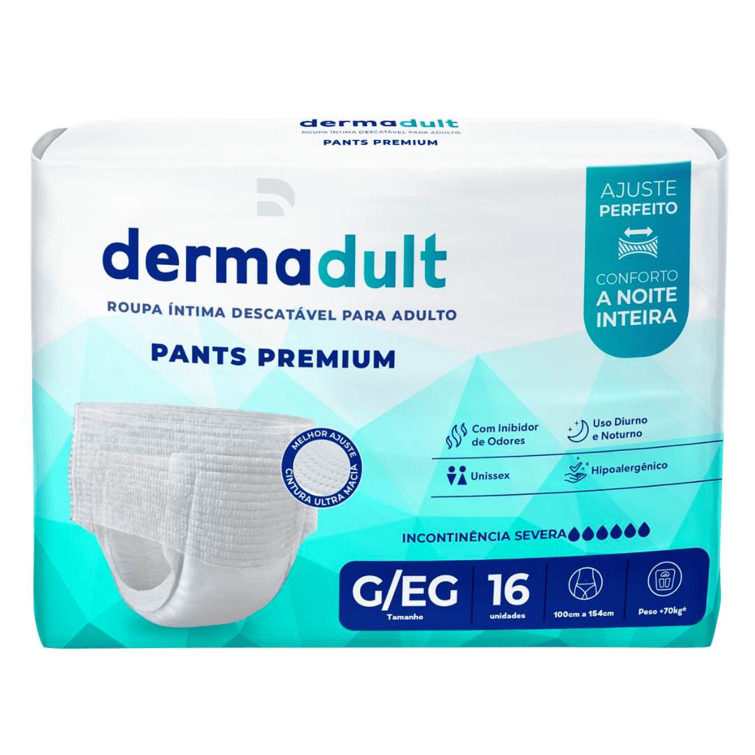 A Dermadult Pants é uma fralda-calça descartável desenvolvida especialmente para o público adulto, oferecendo praticidade, conforto e máxima absorção. Ideal para uso diário, garante proteção prolongada e sensação de frescor.