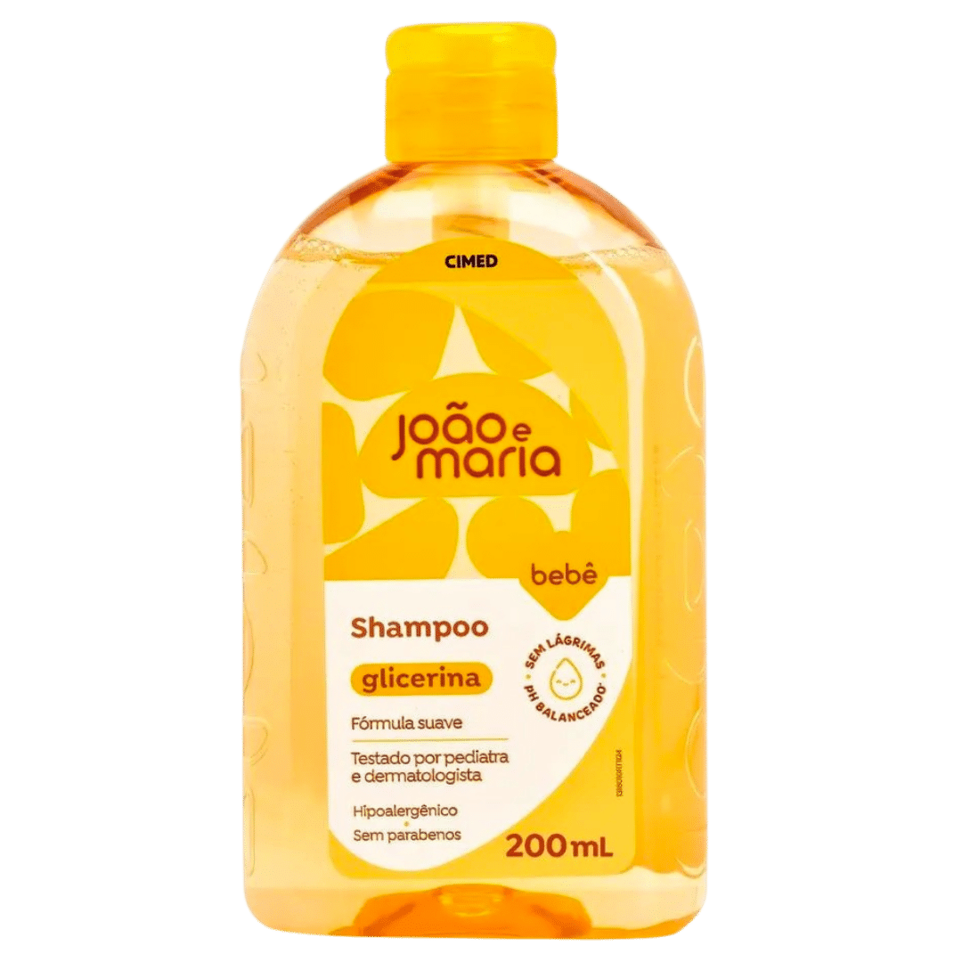 O Shampoo Bebê de Glicerina João e Maria 200ml foi desenvolvido especialmente para cuidar com delicadeza dos cabelos e do couro cabeludo dos bebês. Sua fórmula suave e hipoalergênica é enriquecida com glicerina, ajudando a manter a hidratação natural dos fios e promovendo maciez, brilho e um cheirinho agradável. Dermatologicamente e pediatricamente testado, possui pH balanceado e não causa ardência nos olhos, sendo ideal para o uso diário..