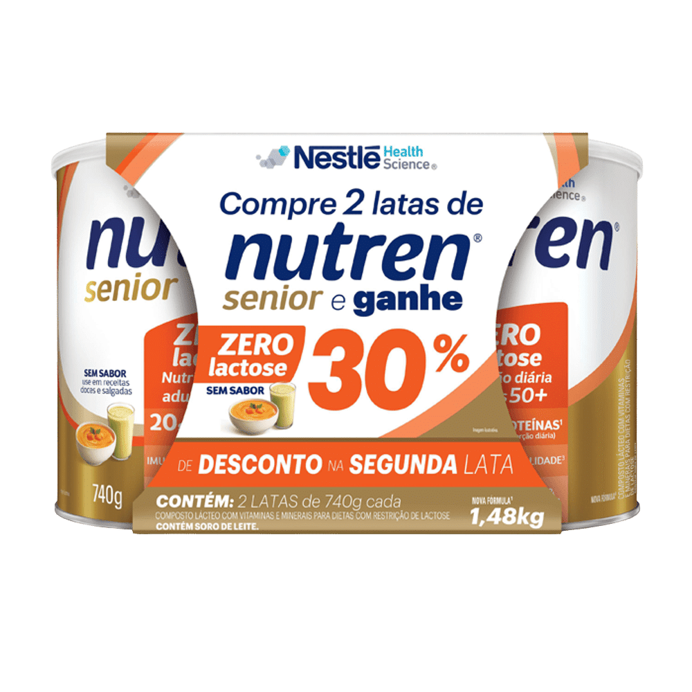 Suplemento Nestlé Nutren Senior Zero Lactose Pack C/2 Latas de 740gr