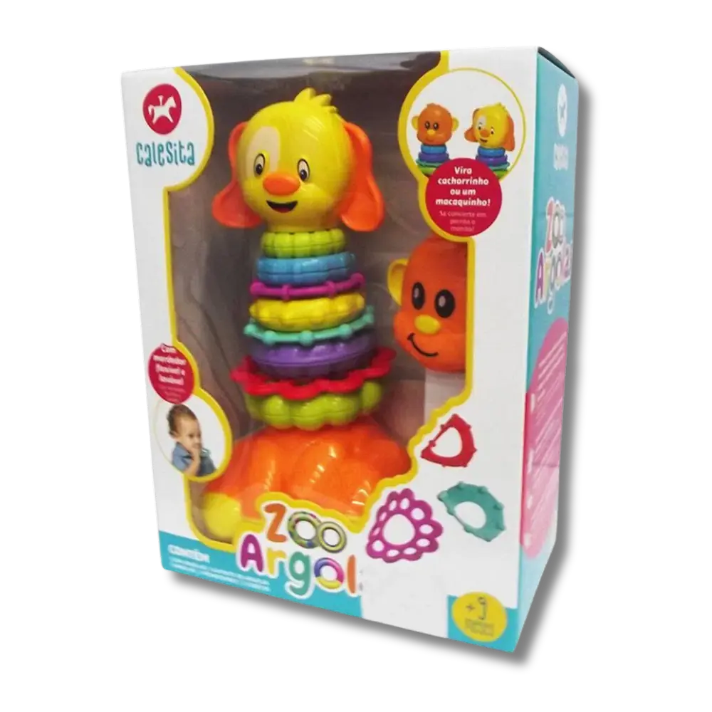 Zoo Argolas Calesita vem com oito argolas coloridas em cores vivas e vibrantes, cada argola pode ser montada conforme os tamanhos, ajudando o bebê na coordenação motora, além de divertir ensina o encaixe das argolas.